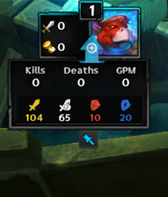 - Tab shows your GPM at the top of the screen. You will also see an arrow next to your GPM if you have the second highest GPM on your team, and 2 arrows if you have the highest.