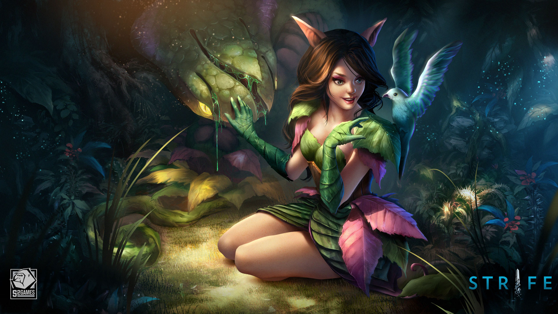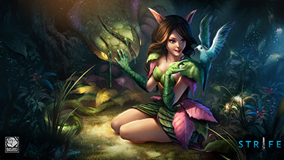 Tinder is a majestic forest faerie from Gael. She has long been the sworn protector of a sacred patch of forest called “The Green Leaf” where it is believed all forest life began. Tinder is gentle and supportive, but she also has a fierce aspect to her nature which emerges when her allies are threatened. Along with her serpentine forest pet, Petals, Tinder is a formidable warrior in the Trials.