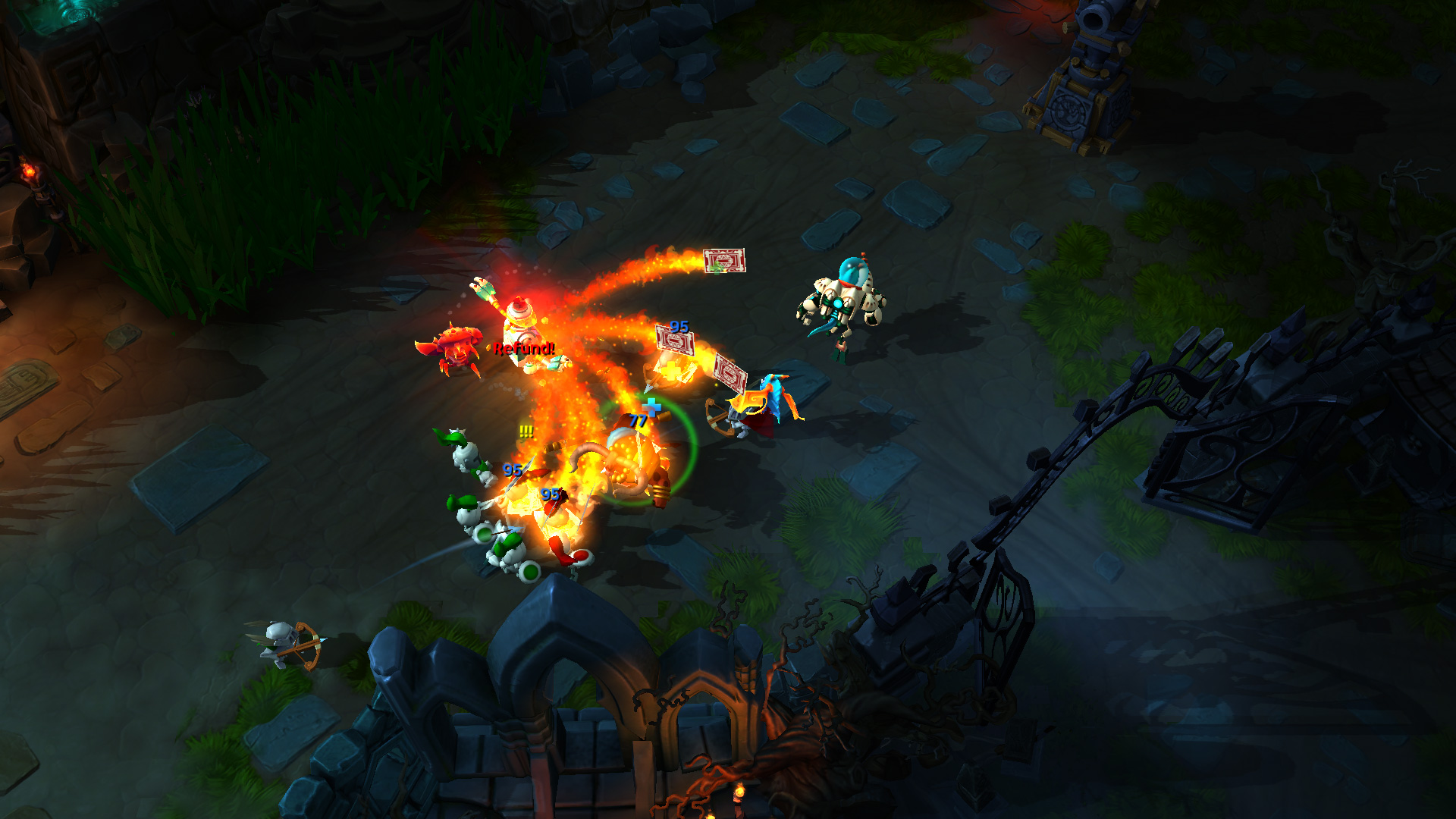 Bandito launches a burning card at each nearby enemy, dealing immediate damage and additional damage over a few seconds.