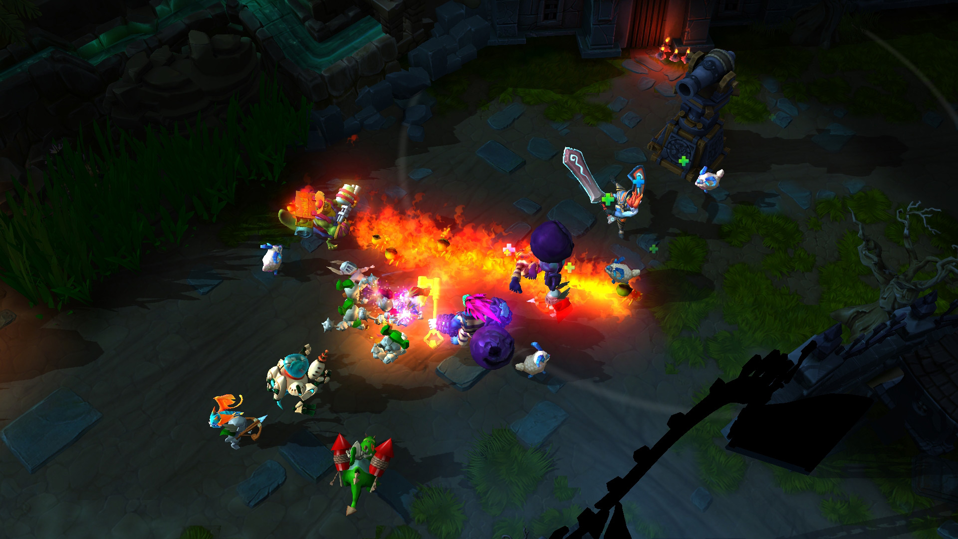Bufford creates a trail of fire at the target location, burning enemies over time.