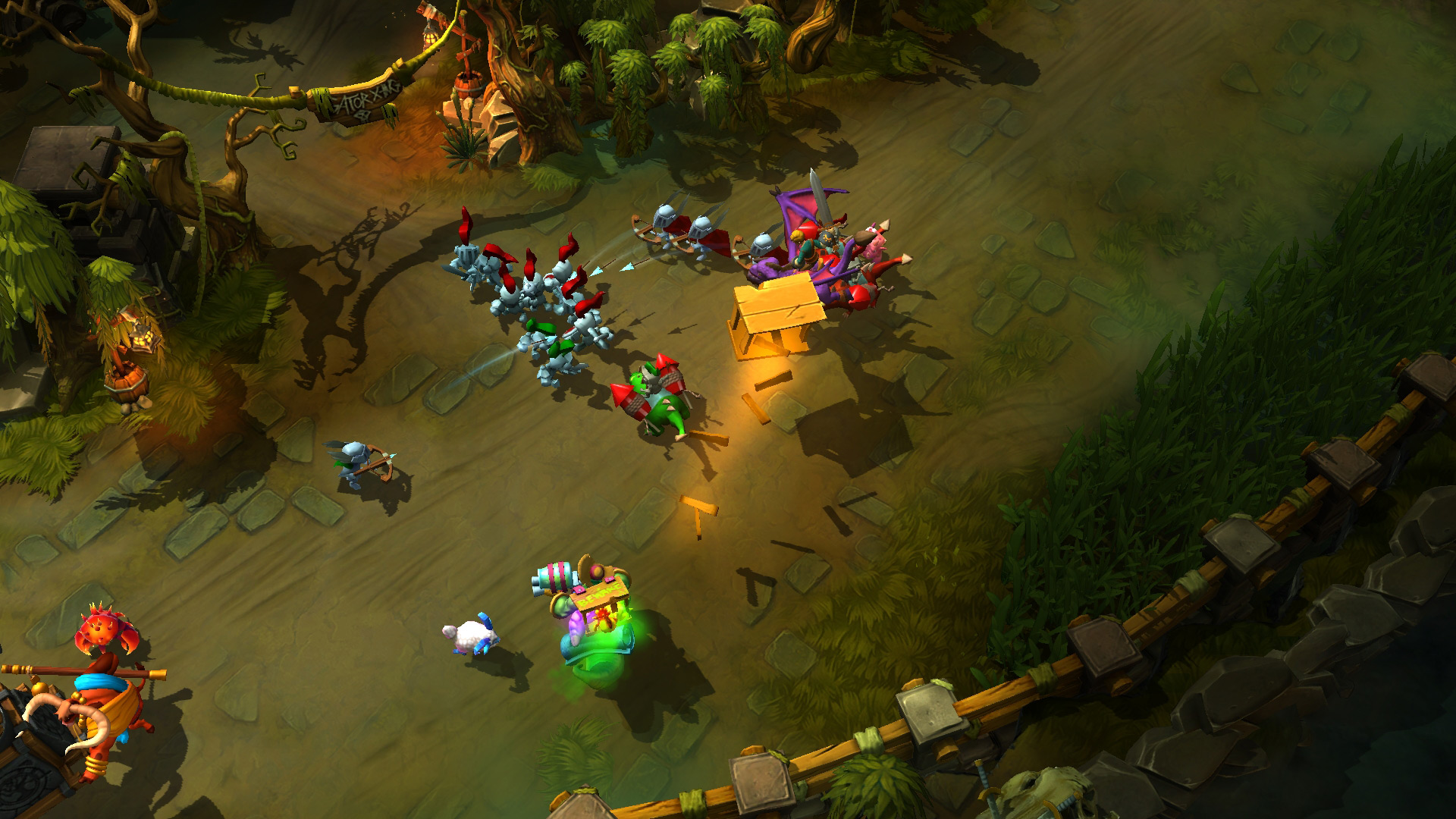 Bufford launches a cage at the target enemy, dealing a percentage of their Max Health and trapping them for a short duration. The cage has Health equal to a fraction of Buford's.